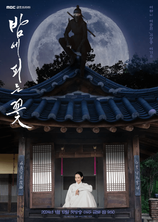 2024년 1월 12일부터 2월 17일까지 MBC에서 방영된 드라마 밤에 피는 꽃은 조선시대를 배경으로 한 코믹 액션 사극입니다. 이하늬와 이종원이 주연을 맡아, 낮에는 수절과부로 살아가지만 밤에는 복면을 쓰고 백성을 돕는 여화의 이중생활을 그립니다. 이 드라마는 MBC 금토드라마 역사상 최고 시청률을 기록하며 큰 인기를 끌었습니다.