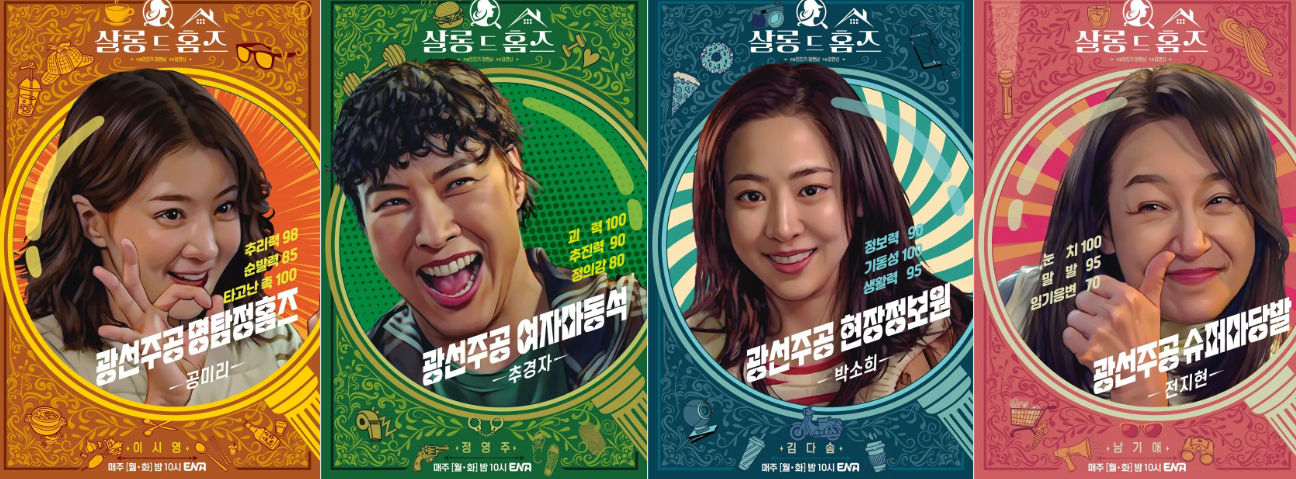 ENA 월화 드라마 살롱 드 홈즈는 개성 강한 4명의 여성 탐정이 주인공으로 등장해, 아파트 단지 안의 수상한 사건들을 해결해 나가는 생활 밀착형 미스터리 드라마입니다. 이 글에서는 각 인물 간의 관계를 중심으로 드라마 전체의 흐름을 한눈에 파악할 수 있도록 정리했습니다.